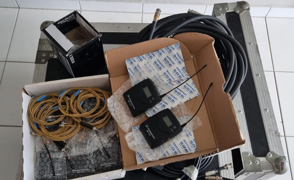 Sistema sem fio de microfones de lapela, auricular, bastão e instrumentos